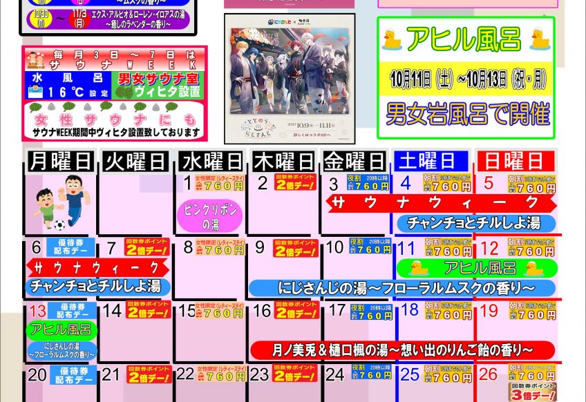 こんにちは、極楽湯宮崎店です!! 10月のイベントのご案内 ①大好評のサウナウィーク!3日(金)~7日(火)までの期間、 引き続き男女サウナ室にヴィヒタを設置しています★また、水風呂の温度も16℃設定となります。 ロウ...